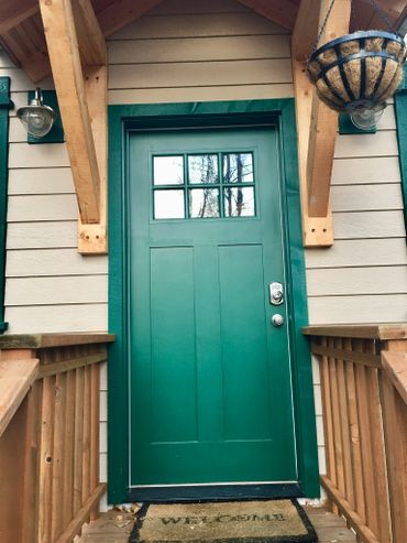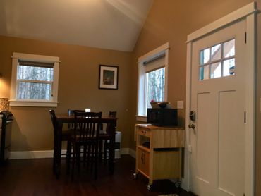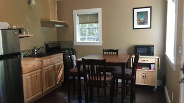 New in 2017, Mount Dall Cottage is a modern 1-bedroom with queen bed, beautiful hardwood floors, and an extra-comfy reclining suede sofa. A full kitchen with dining for four, a large beautiful bathroom with an over-sized walk-in shower, and washer and dryer complete the unit.